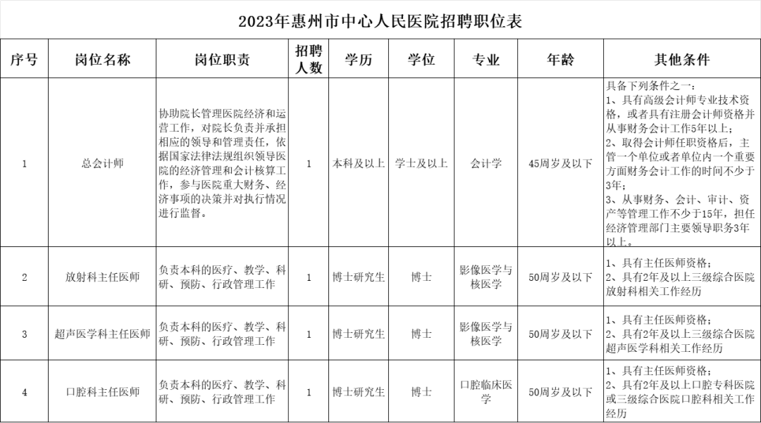 惠州市中心人民醫(yī)院招聘(第二批次)