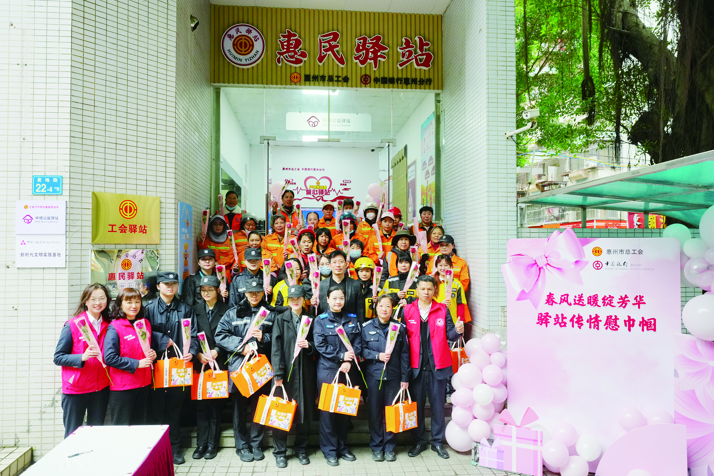 人間最美三月天,春花爛漫綻新顏。為了加強對女性戶外勞動者關心關愛,在第115個“三八”國際勞動婦女節(jié)到來之際,3月6日上午,惠州市總工會聯(lián)合中國銀行惠州分行(以下簡稱“惠州中行”)在惠州中行惠民驛站開展“春風送暖綻芳華 驛站傳情慰巾幗”關愛活動,吸引50多名來自環(huán)衛(wèi)、外賣、協(xié)警、安保等行業(yè)的女性戶外勞動者前來參加。