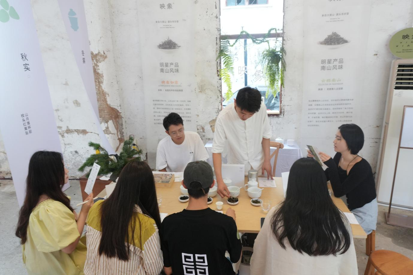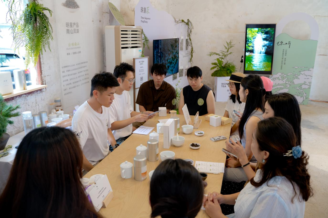 “映象茶的每一片茶葉都帶著惠州的基因。” 品牌主理人楊倩怡在快閃店落地的第一天上介紹到,大南山茶園位于北回歸線穿過的生態(tài)屏障區(qū),常年云霧繚繞,土壤中富含的微量元素與東江流域的濕潤氣候,共同孕育出茶湯里獨有的 “嶺南甘韻”。展覽中,現(xiàn)場時刻都在進行的“杯測活動”直觀呈現(xiàn)了“嶺南甘韻”:大南山滋養(yǎng)而成的茶葉在同樣的沖泡手法和沖泡條件,沖泡后色澤、香氣的細微差異,被放大成可視化的藝術(shù),讓觀眾讀懂 “一方水土養(yǎng)一方茶” 的深層邏輯。