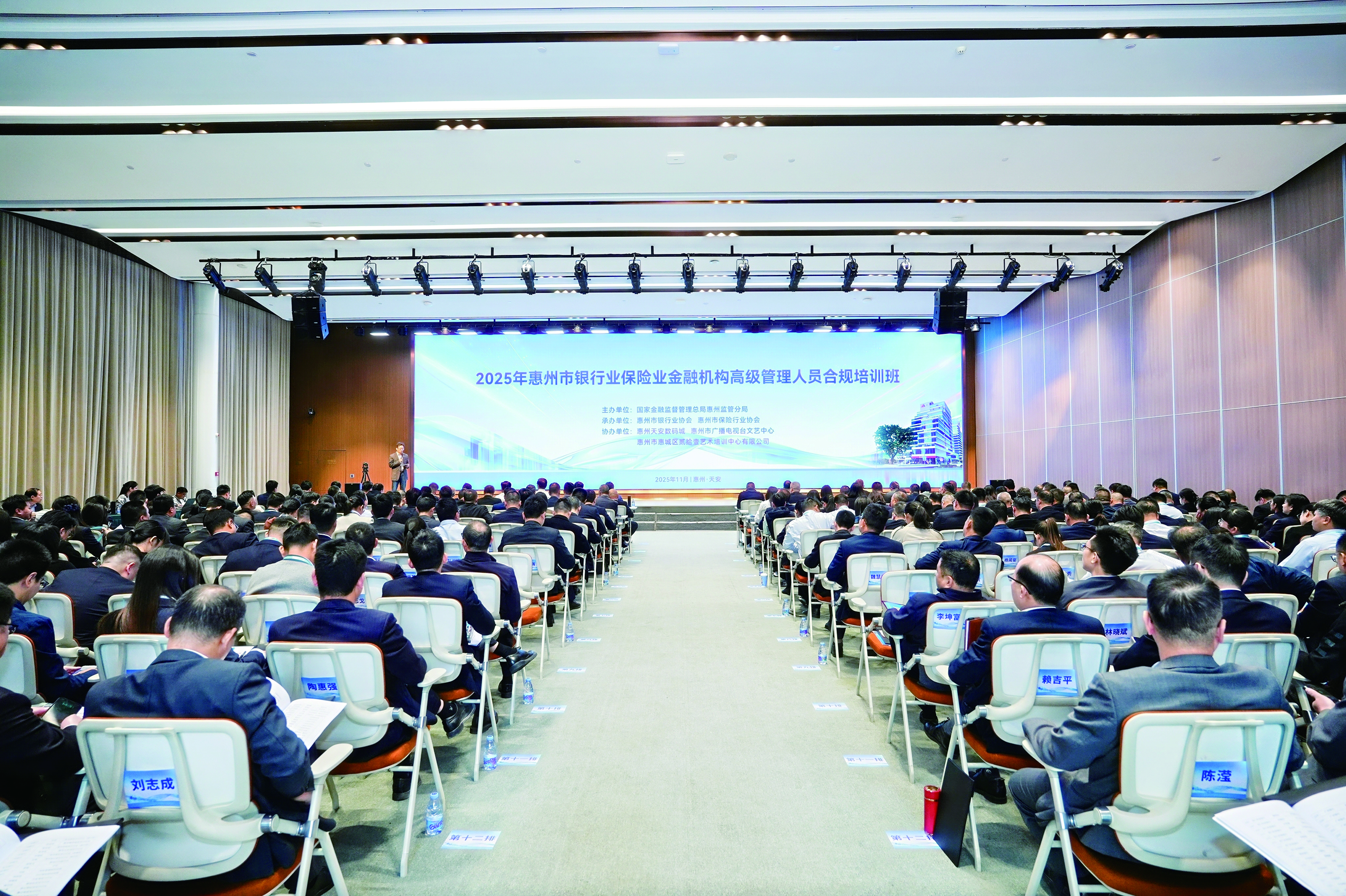 為深入學(xué)習(xí)貫徹習(xí)近平總書記關(guān)于金融工作的重要論述,全面落實(shí)中央金融工作會(huì)議精神,切實(shí)提升全市銀行業(yè)保險(xiǎn)業(yè)高級(jí)管理人員的政治素養(yǎng)、法紀(jì)意識(shí)與合規(guī)治理能力,11月26日至28日,由國家金融監(jiān)督管理總局惠州監(jiān)管分局主辦、惠州市銀行業(yè)協(xié)會(huì)與惠州市保險(xiǎn)行業(yè)協(xié)會(huì)聯(lián)合承辦的“惠州市銀行業(yè)保險(xiǎn)業(yè)金融機(jī)構(gòu)高級(jí)管理人員合規(guī)培訓(xùn)班”成功舉辦。本次培訓(xùn)匯聚全市銀行、保險(xiǎn)機(jī)構(gòu)近300名高管人員參訓(xùn),為筑牢惠州金融合規(guī)防線、推動(dòng)行業(yè)高質(zhì)量發(fā)展注入強(qiáng)勁動(dòng)能。