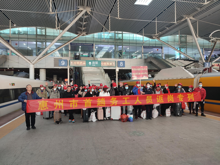 1月30日(初九)下午5時(shí)許,一趟搭載著300余名云南籍務(wù)工人員的“惠州號(hào)”專列G2924次順利抵達(dá)深圳北站,這是今年惠州首趟務(wù)工人員返崗專列,也是繼1月27日首架黔西南州務(wù)工人員返惠返崗包機(jī)之后的又一關(guān)愛(ài)務(wù)工人員、保障企業(yè)復(fù)工復(fù)產(chǎn)的舉措,將持續(xù)推動(dòng)惠州大規(guī)模有組織務(wù)工人員節(jié)后有序返崗一波接著一波,一浪高過(guò)一浪。列車到站后,該批務(wù)工人員在惠州市人社部門的統(tǒng)一組織安排下,乘坐大巴安全返回惠州各企業(yè),實(shí)現(xiàn)了從“家門口”到“車門口”到“廠門口”的精準(zhǔn)接送,保障企業(yè)的節(jié)后用工需求。