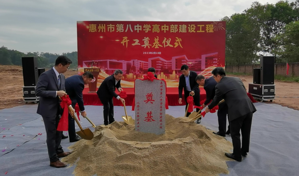 2月18日上午,惠州市第八中學(xué)高中部建設(shè)工程開工奠基。