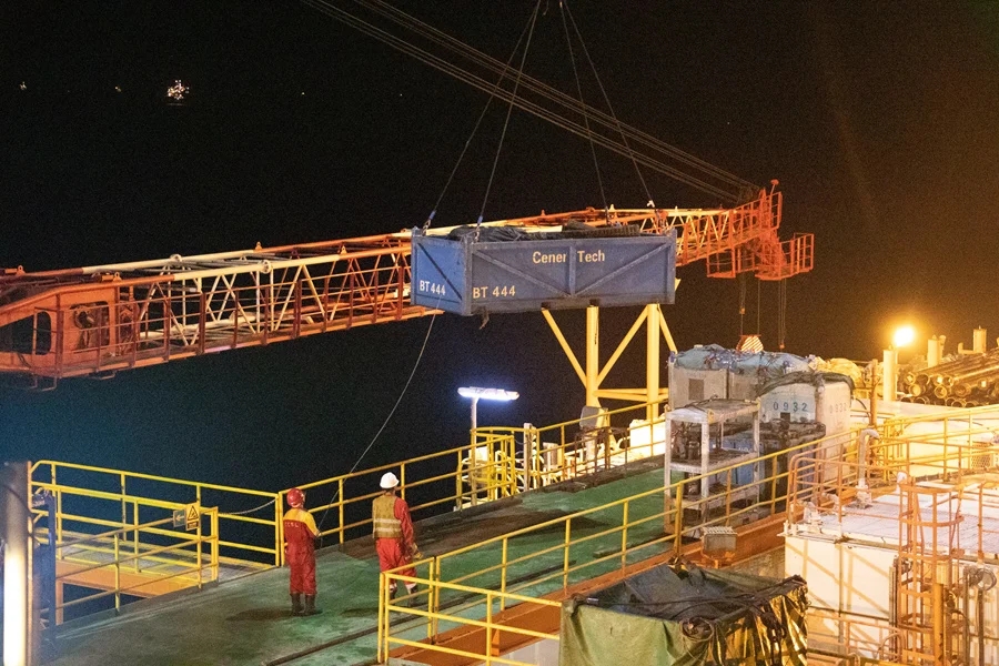 項目組通過自立科研項目“導管架定向打樁理論研究”,構(gòu)建了精準的隔水導管定向打樁計算模型,消除了加密井眼碰撞風險;針對砂礫巖海水鉆進易垮塌特點,創(chuàng)新性地添加提粘材料,增加封堵攜砂性……在眾多創(chuàng)新技術(shù)的加持下,今年4月15日六口井表層鉆井作業(yè)安全順利完成,表層整體較歷史井提速50%,提效43%,達到歷史最高水平,超預期完成表層作業(yè)階段攻堅提速的目標。