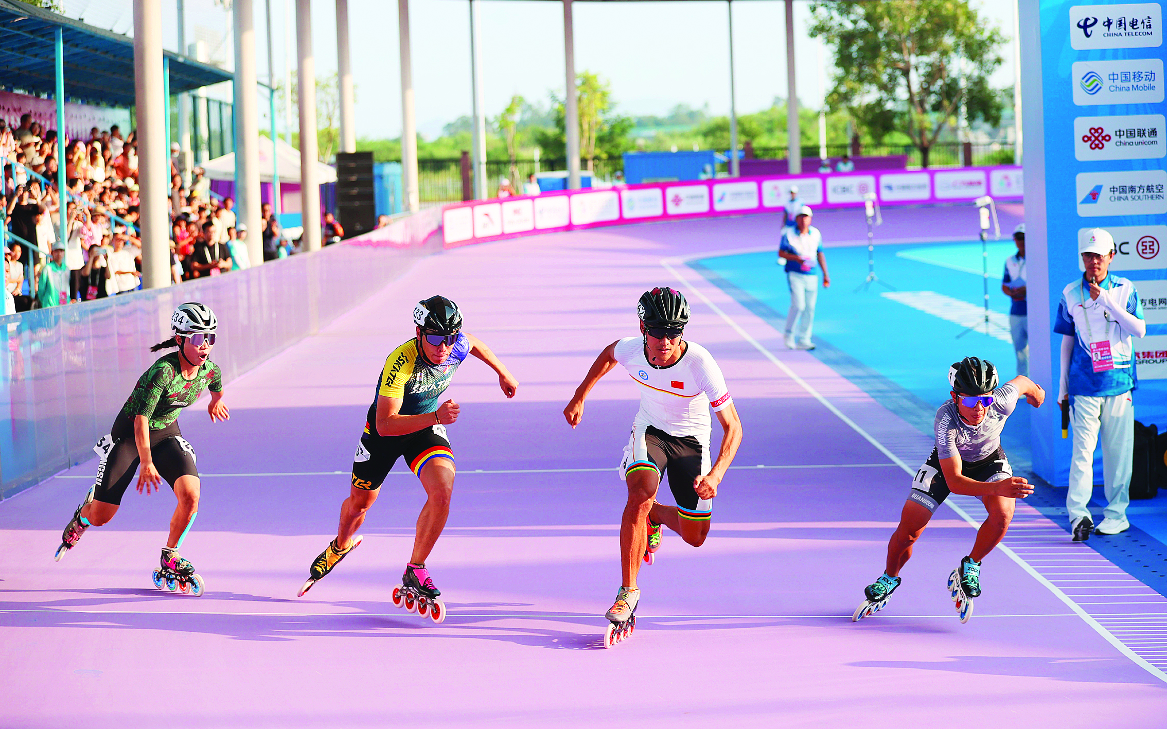 第十五屆全國運動會群眾比賽輪滑項目決賽10月15日至19日在惠州舉行。作為全運會群眾比賽的重要組成部分,本屆輪滑項目設(shè)有速度輪滑、自由式輪滑和單排輪滑球三個分項,共產(chǎn)生8枚金牌。來自全國各省、自治區(qū)、直轄市及香港特別行政區(qū)的24支代表隊近400名運動員在賽場上展開激烈角逐。