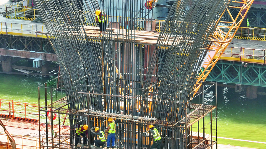塔吊林立,車輛穿梭,機(jī)械轟鳴,穿著反光背心頭戴安全帽的工人們在腳手架之間忙活……中秋國慶假期,鵝城大橋項目建設(shè)如火如荼。為了安全高效地完成鵝城大橋建設(shè)任務(wù),中秋國慶假期,項目一線作業(yè)人員放棄休息堅守崗位。