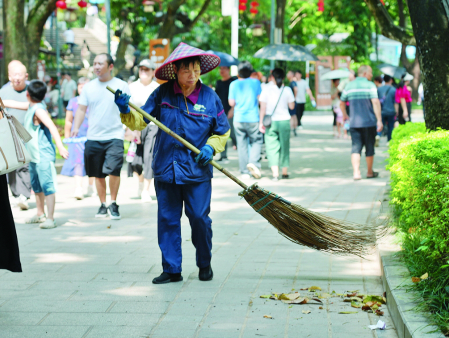 惠州西湖景區(qū)內(nèi)保潔工作人員。惠州日報記者張藝明 攝
