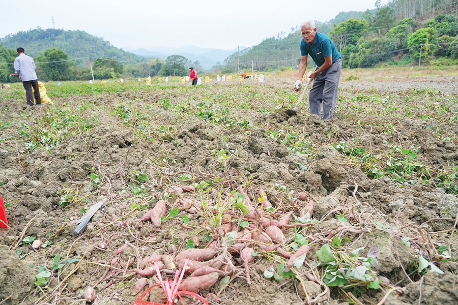 仲冬時(shí)節(jié),村民們忙著采收番薯,并將收回來的番薯制成薯粉絲。經(jīng)過沖洗、碾磨、揉粉、沉淀、蒸熟、切割、晾曬等10多道工序后,番薯被制成薯粉絲,成為家家戶戶春節(jié)年貨必備之品。