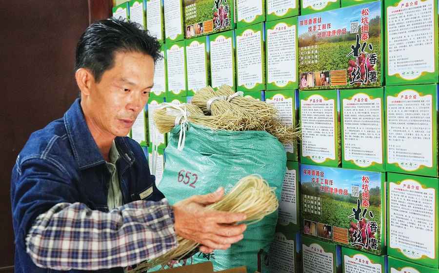 在惠東縣多祝鎮(zhèn)元嶺村、河北村等十幾個(gè)自然村,有60多戶村民一直保留著手工制作薯粉絲的傳統(tǒng),通過電商平臺(tái)拓展銷售渠道,讓薯粉絲“走出”惠東小山村,走向更廣闊市場(chǎng),成為村民增收致富的“金粉絲”。