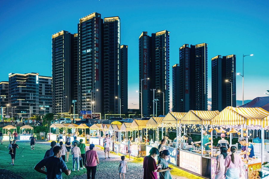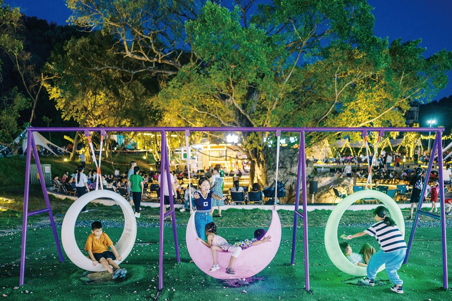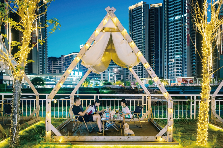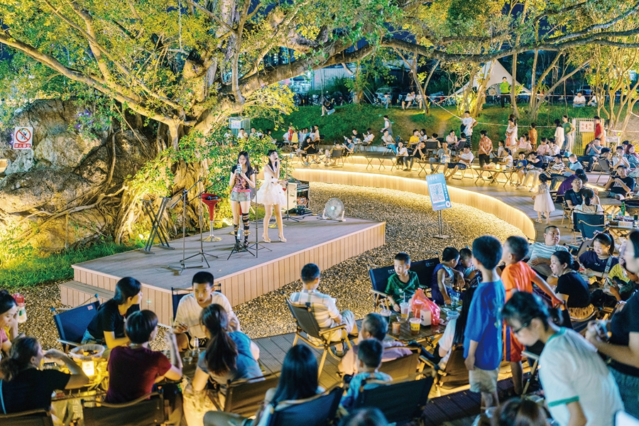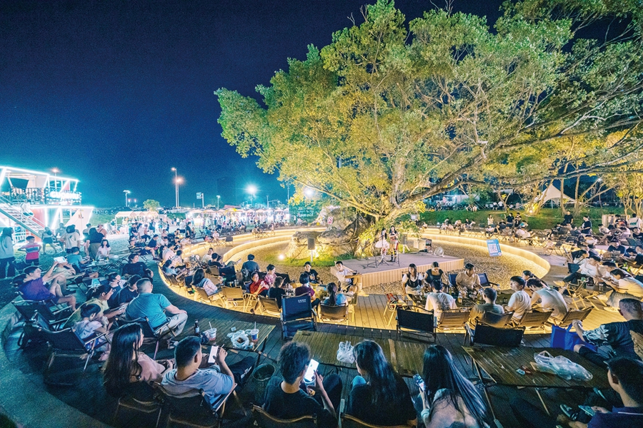 在營(yíng)地周?chē)有別具一格的創(chuàng)意集市。就著琳瑯滿(mǎn)目的燒烤美食和各色飲品,市民們?cè)诖讼硎芤魳?lè)、放飛激情、釋放壓力,度過(guò)難忘而愉悅的夜晚。