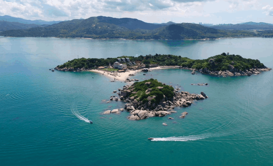 三角洲島,位于惠東縣巽寮灣度假村,是中國第一個擁有合法產權的私人海島,一直以“水清、石奇、沙幼”三絕著稱于南海,素有“中國的馬爾代夫”的美譽。