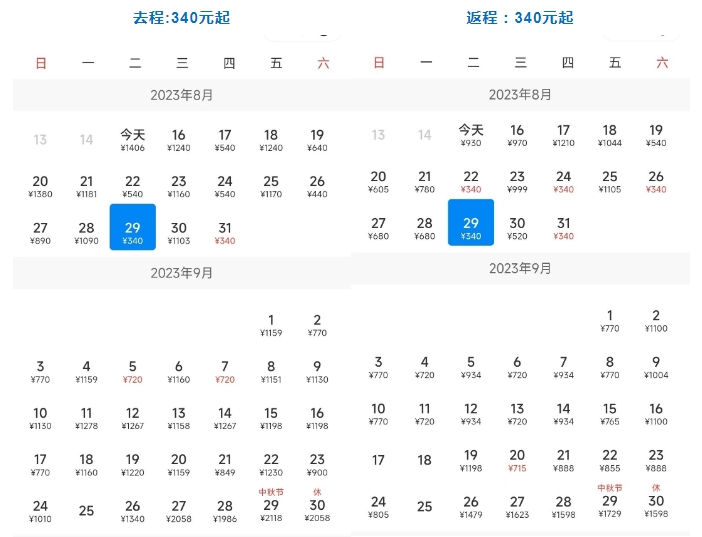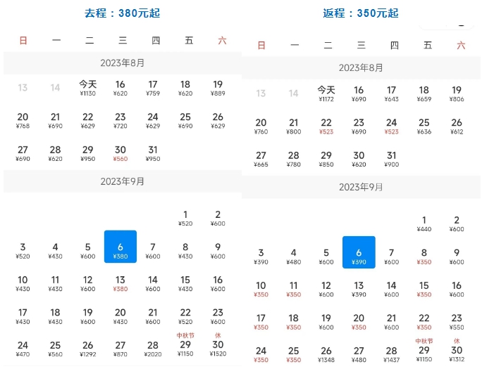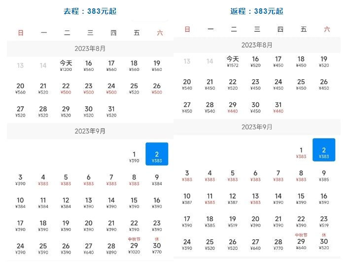 注:下述截圖時間基本在8月15日下午15:20前后,數(shù)據(jù)均來自攜程,因機(jī)票變動較快,大家購票請以實(shí)際為準(zhǔn)!