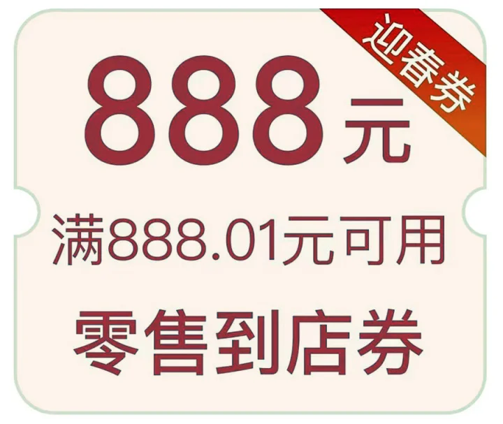 據(jù)了解,在第四輪活動(dòng)中,零售到店消費(fèi)券、餐飲到店消費(fèi)券、小程序消費(fèi)券折扣力度不減,與第三輪相同,券面額統(tǒng)一為滿50元減20元、滿100元減40元、滿200元減80元、滿400元減150元,相當(dāng)于直接打六折。而更令人驚喜的是,為慶祝新年到來,之前備受消費(fèi)者喜愛的滿666.01元減666元“暖冬券”,將直接升級(jí)為滿888.01元減888元“迎春券”(零售到店券),對(duì)市民來說,若能抽中這一大禮,無(wú)疑堪比“潑天富貴”。