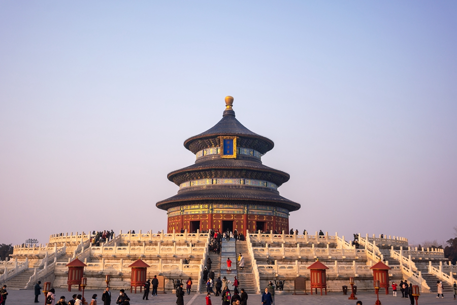 明、清兩代帝王祭祀皇天祈五谷豐登之場所。天壇是圜丘、祈谷兩壇的總稱,有壇墻兩重,形成內外壇。壇墻南方北圓,象征天圓地方。