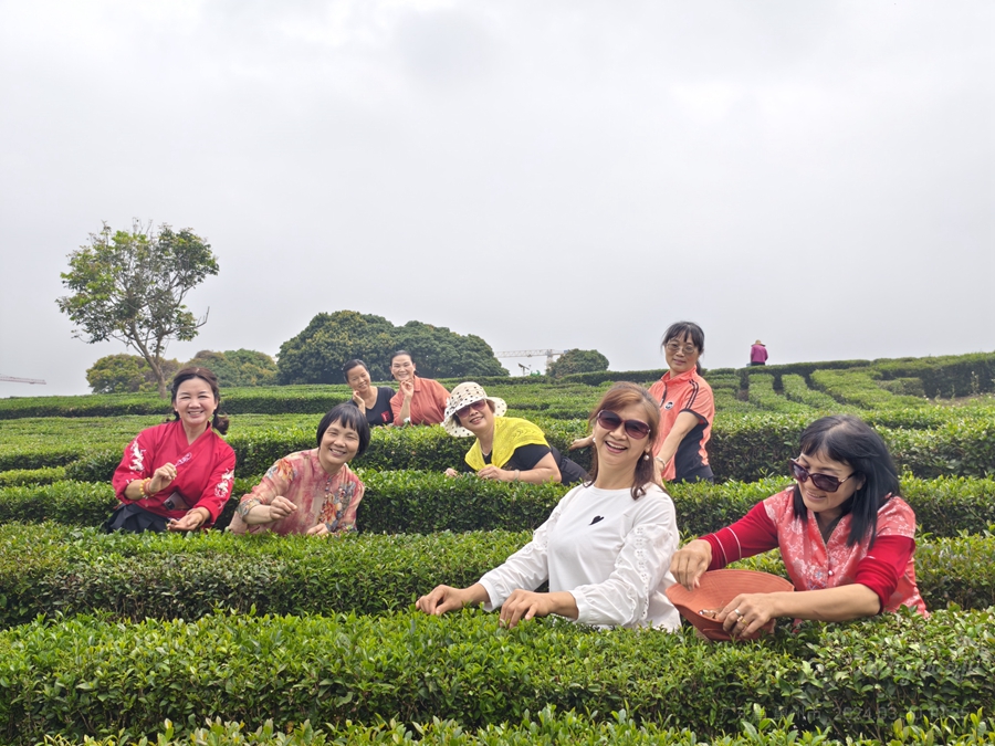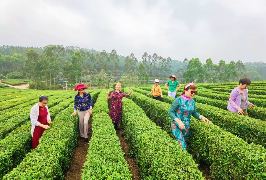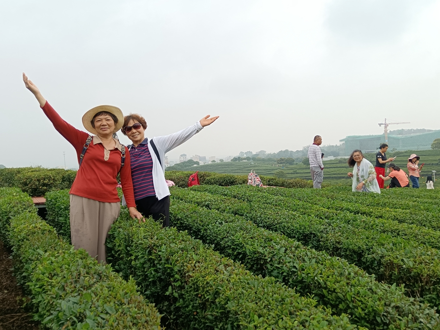 在茶園里享受好時(shí)光。 余澤芬 攝