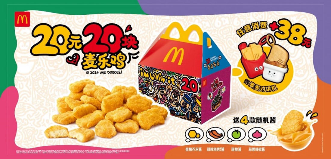 麥當(dāng)勞中國于2024年5月22日正式開啟2024年六一兒童節(jié)系列主題活動(dòng),今年的主題名稱為“一塊麥樂雞,一塊多開心!”。麥當(dāng)勞特別攜手蜚聲全球的國際藝術(shù)家Mr Doodle(涂鴉先生)攜手共創(chuàng),圍繞經(jīng)典產(chǎn)品麥樂雞,為消費(fèi)者打造專屬節(jié)日體驗(yàn)和玩趣美味選擇,邀請(qǐng)小朋友及大朋友們一同歡度六一,感受童趣快樂。
