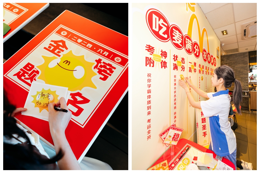 顧客在麥當勞“高考滿分加油站”主題旗艦店寫下暖心祝福,為考生加油鼓勁
