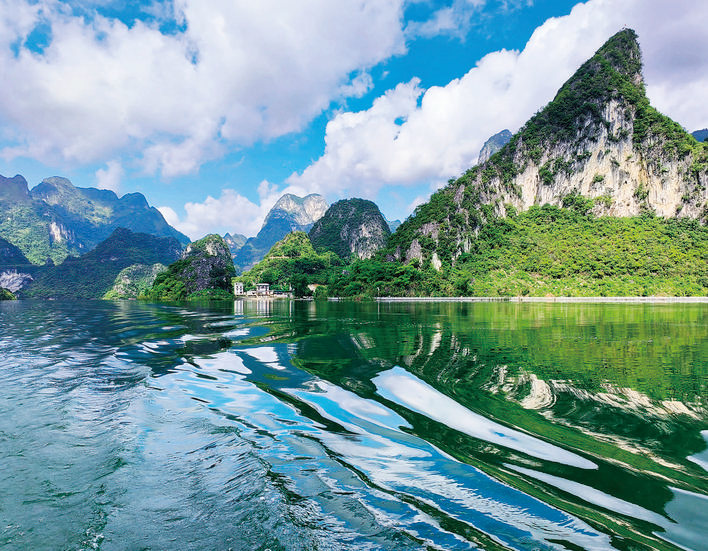 浩坤湖在最后一天濃妝艷抹出場了,像顆遺落人間的明珠,在全車人尖叫聲中閃爍著耀眼光芒。翡翠與綠寶石交織的色調勾勒出絕世美顏,讓人第一眼目睹時永生難忘。而她:恬靜優(yōu)雅脈脈含羞。好想乘一葉輕舟,雙槳驚飛鴻雁,抑或穿行小橋仙居拜訪人家。集體坐船繞湖一周,致敬青山如畫,碧水如屏。愿祖國青山綠水長駐人間。