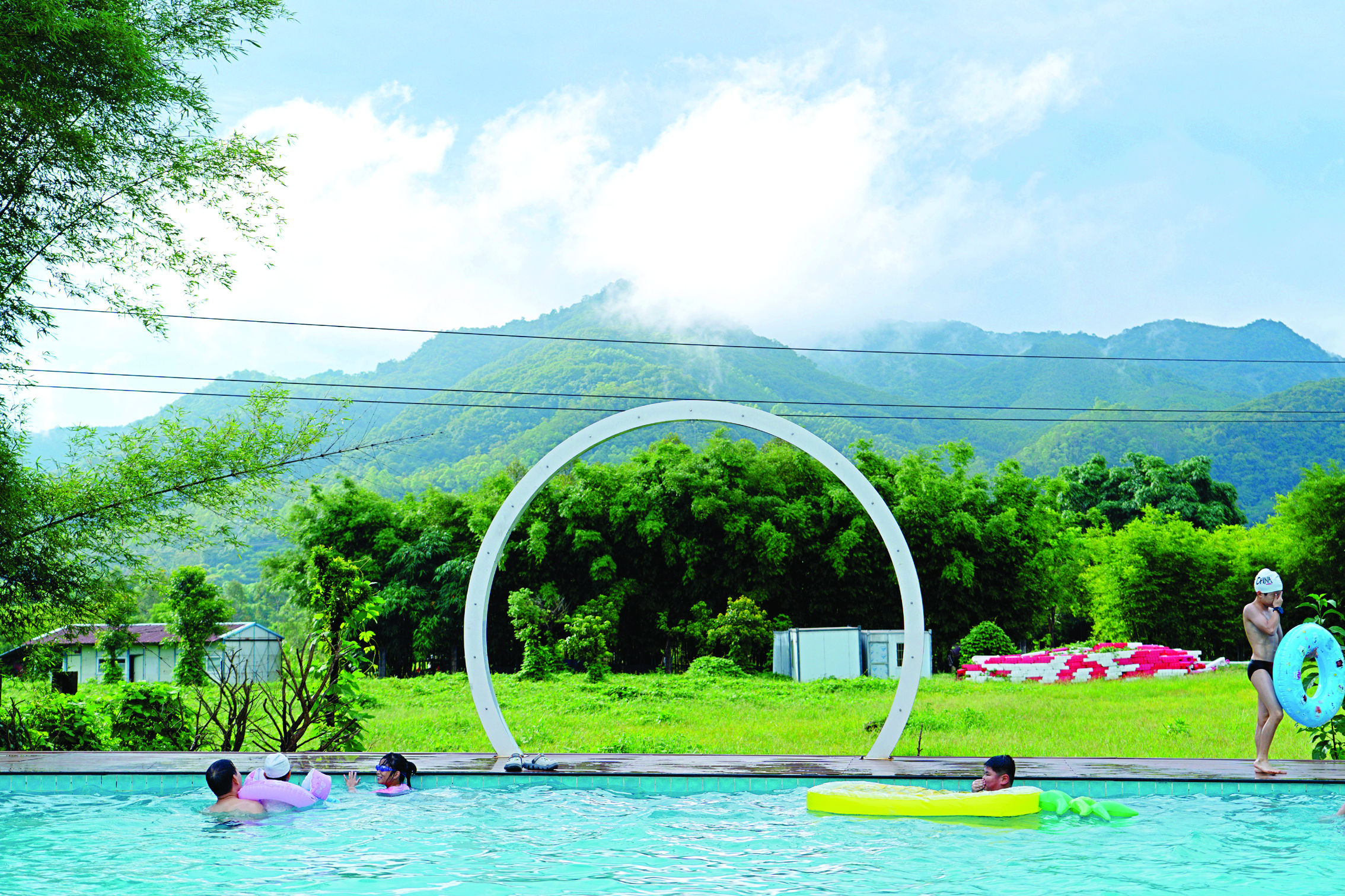 游客在龍華鎮(zhèn)的民宿嬉水游玩。惠州東江圖片社供圖