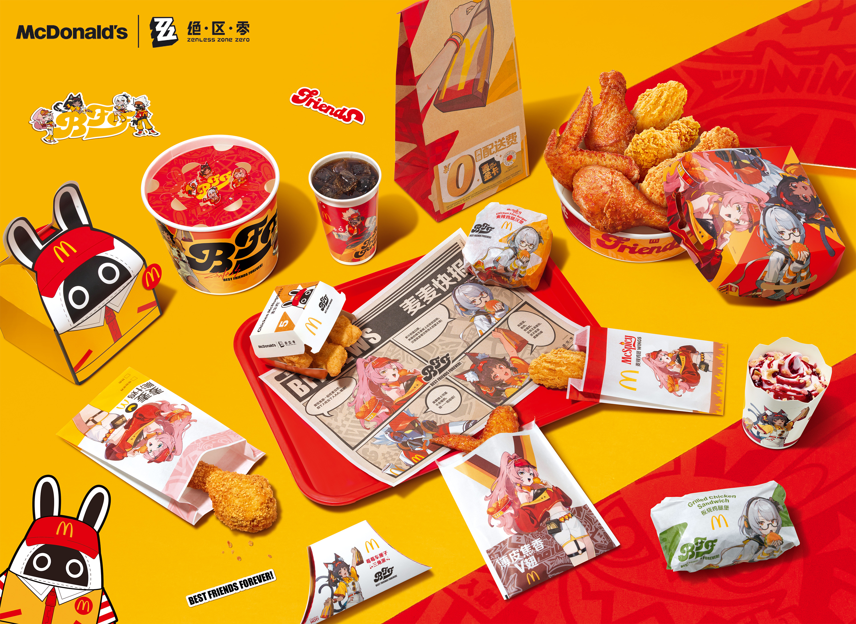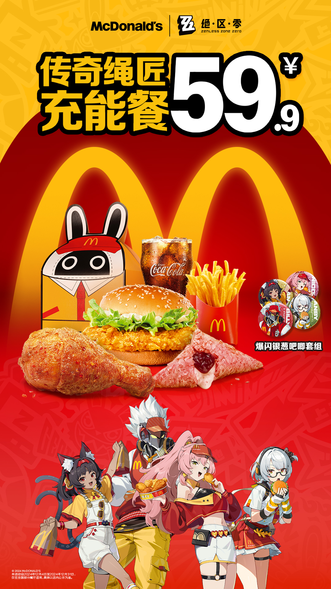 2024年12月4日,麥當(dāng)勞中國與米哈游旗下游戲《絕區(qū)零》,正式開啟聯(lián)動(dòng)活動(dòng),推出主題套餐和線上線下系列互動(dòng),圍繞“永遠(yuǎn)的好朋友BFF”(Best Friends Forever)主題開展合作。與此同時(shí),麥當(dāng)勞推出全新街頭辣鹵風(fēng)味薄皮脆汁雞,超值雞肉小食拼盤及多人套餐,讓“無籠好雞”的雞肉美味,陪伴雙方粉絲及其好友,開展年末歡聚的友誼跨界之旅。