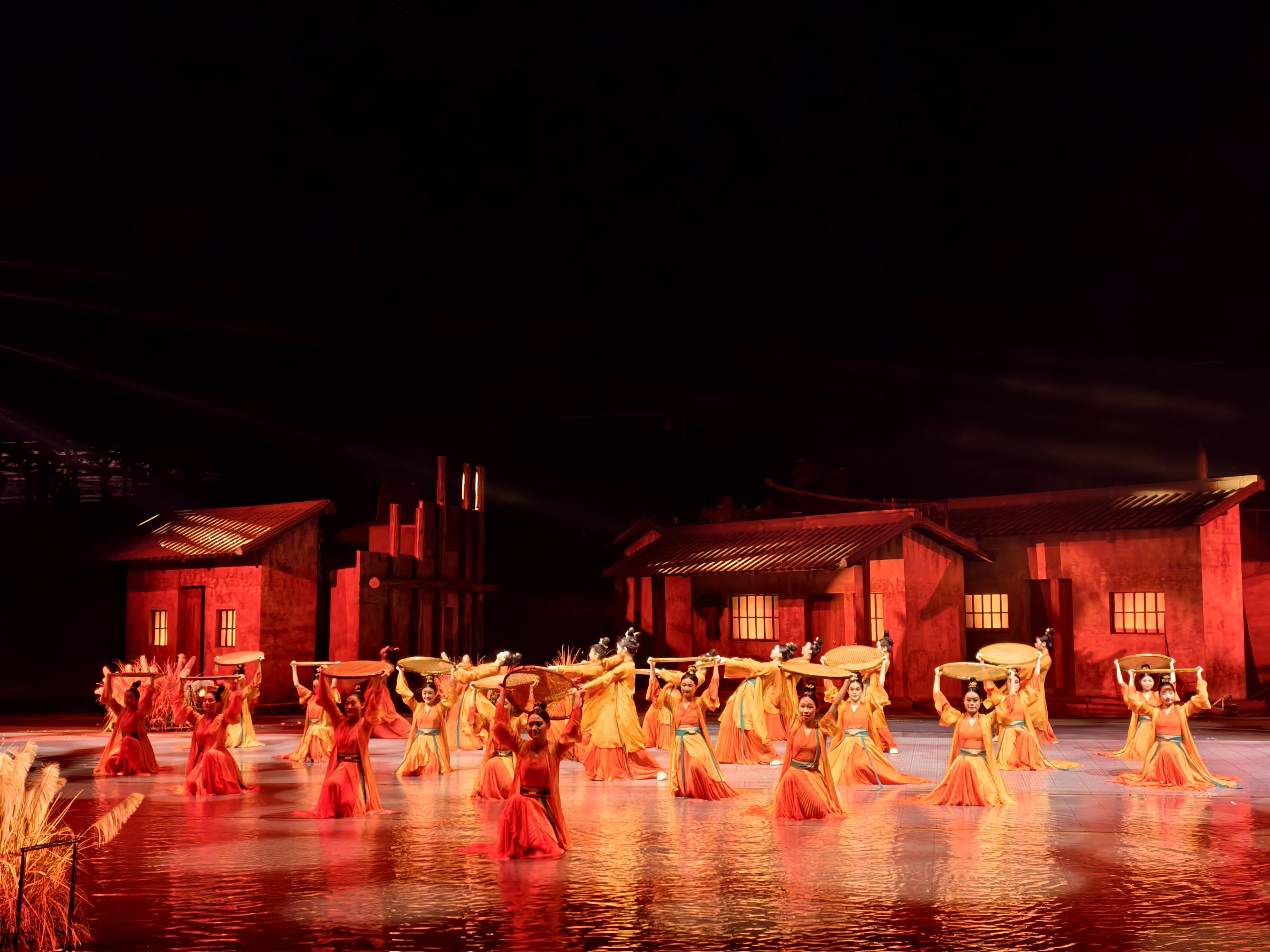 作為潮汕文旅新名片,《英歌情》以巨資打造,歷時(shí)三年精心打磨。演出以國(guó)家級(jí)非遺“英歌舞”為靈魂,通過《古潮之火》《守護(hù)家園》《安居樂業(yè)》《普天同慶》《英歌有情》等五個(gè)篇章,將4000年潮汕文明濃縮成60分鐘的視覺史詩。從虎頭埔文化起源到明代抗倭傳奇,從民俗生活到精神傳承,每一幀畫面都是對(duì)潮汕基因的深度解碼。