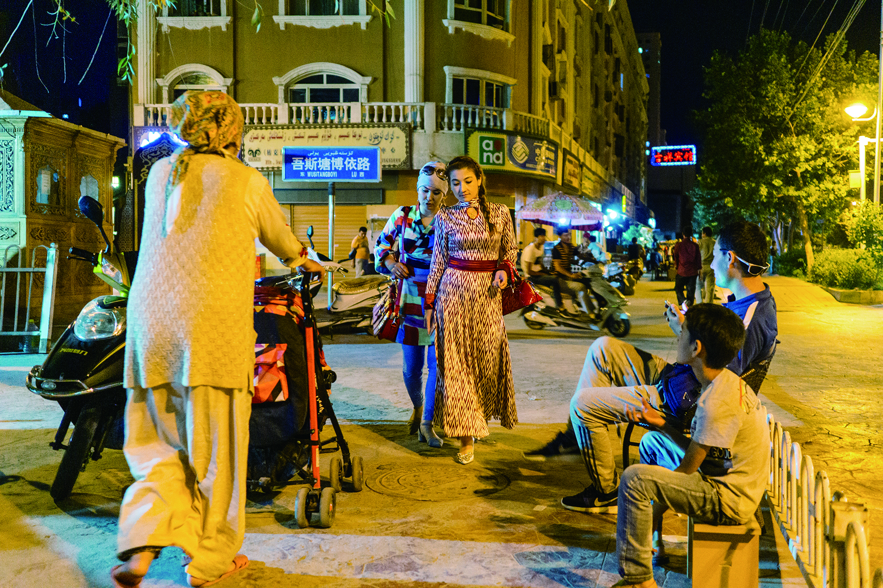 街頭身著艾德萊斯綢的維吾爾族女士。