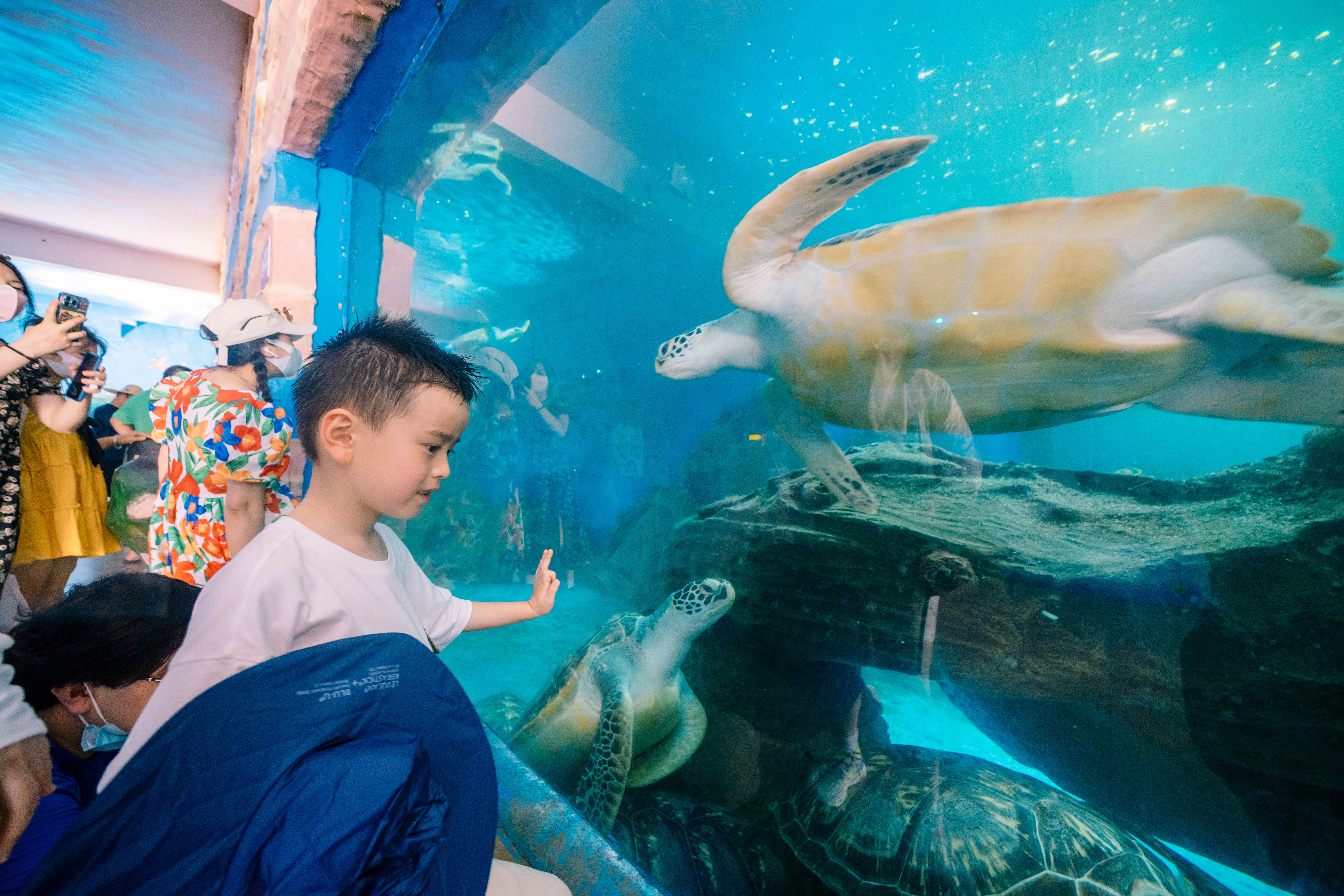 與海龜親密互動。
