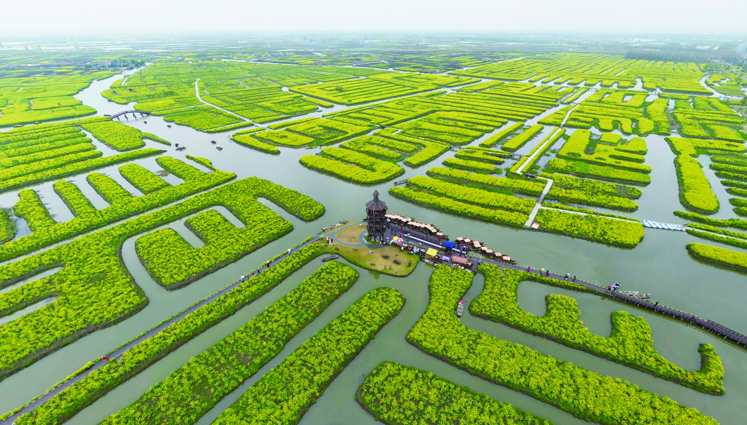 這里是獨(dú)具特色的“水上花海”。每年清明前后,數(shù)千畝油菜花在水網(wǎng)交織的垛田上競(jìng)相綻放,金黃一片,蔚為壯觀。游客可乘坐古樸的小木舟,穿行于蜿蜒水道之間,四面花香撲面而來。登高望遠(yuǎn),滿目金黃如錦氈覆地,蜂飛蝶舞,是春日里最震撼的視覺盛宴。