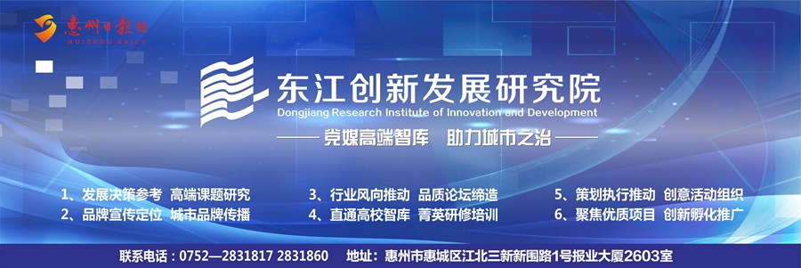 東江創(chuàng)新發(fā)展研究院是惠州日?qǐng)?bào)社充分發(fā)揮黨報(bào)黨媒優(yōu)勢,整合內(nèi)外智力資源,傾力打造的高端媒體智庫服務(wù)平臺(tái)。秉承“黨媒高端智庫 助力城市之治”發(fā)展理念,研究院攜手省內(nèi)外名校專家,組建灣區(qū)城市品牌傳播研究中心,著眼于經(jīng)濟(jì)社會(huì)創(chuàng)新發(fā)展中的熱點(diǎn)、難點(diǎn)、重點(diǎn)問題,致力于經(jīng)濟(jì)、政務(wù)、文化、社會(huì)、企業(yè)發(fā)展等方面的課題研究。同時(shí),研究院肩負(fù)廣東黨的建設(shè)研究院惠州研究中心的建設(shè)使命,致力深入推動(dòng)黨的建設(shè)、黨的歷史和黨的理論研究,為惠州高質(zhì)量發(fā)展乃至粵港澳大灣區(qū)建設(shè)夯實(shí)思想基礎(chǔ)。